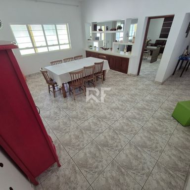 A casa principal possui 400 m² muito bem distribuídos, com 5 dormitórios (3 suítes), salas amplas, cozinha espaçosa, despensa e área de serviço.